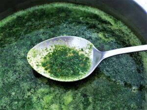 A clorofila é um dos superfoods que está em voga. Aqui descreveremos o processo de extração partindo de espinafre, é um produto muito nutritivo que pode ser consumido de diferentes formas: sucos, produção de massa verde, pão e até para fazer tempura verde.