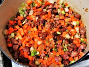 Paralelamente frite algumas linguiças na panela.