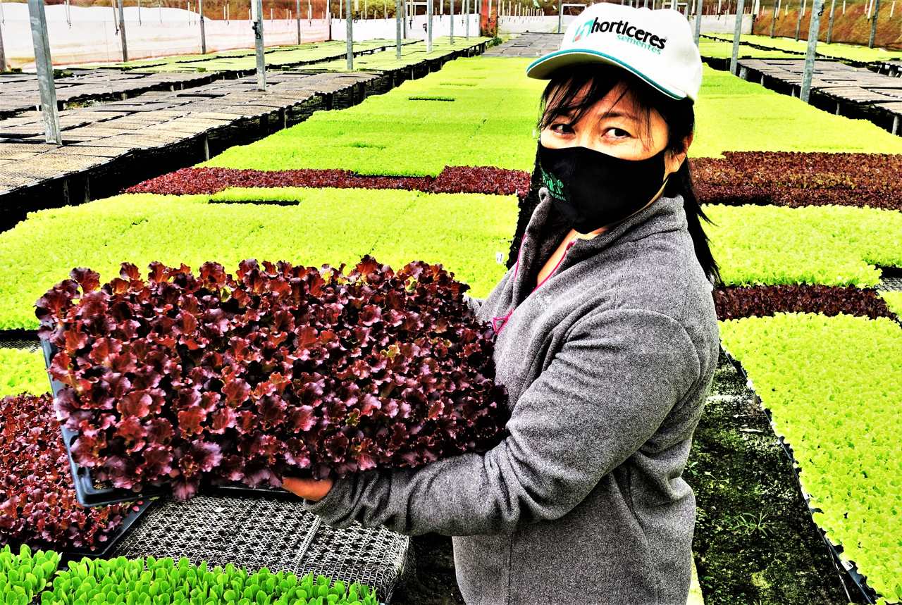 Comandada pela Alba Saziki, a Mudas Saziki é uma empresa incubadora de mudas de hortaliças. As sementes de variadas espécies de verduras e legumes são plantadas nas bandejas com substrato especial e em seguida abrigadas e cuidadas nas estufas-incubadeiras por cerca de 40 dias antes de serem despachadas para as propriedades dos produtores rurais. São dezenas de milhares de mudas semanalmente, então é bem possível que você já tenha consumido alguma hortaliça que foi semeada e cuidada sob os cuidados da Alba.