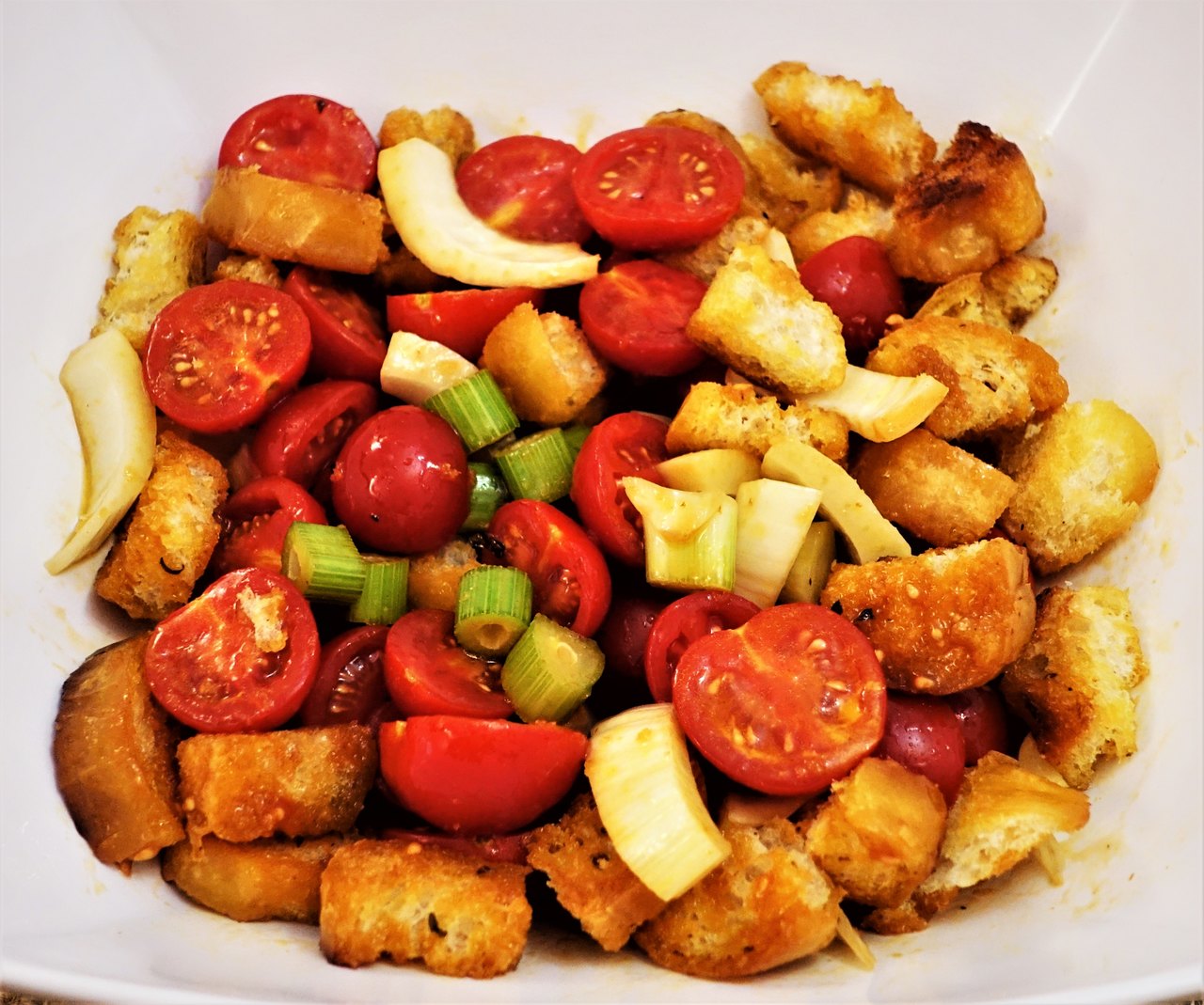 Estamos chamando essa salada de “tipo” panzanella pois não estamos seguindo a receita clássica. Você pode criar a sua própria versão experimentando variações.