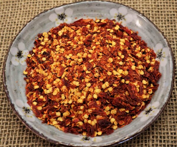 Nós pegamos apimenta dedo de moça cultivada sem pesticidas, lavamos, esterilizamos e secamos até o ponto em que, se apertar com os dedos, quebra em pedacinhos (tipo pimenta calabresa) com a pressão. Posteriormente passamos a pimenta seca num processador para obter a granulometria de uso. Mantém todas as características de pimenta fresca, mas muito mais conveniente pela facilidade de emprego culinário.