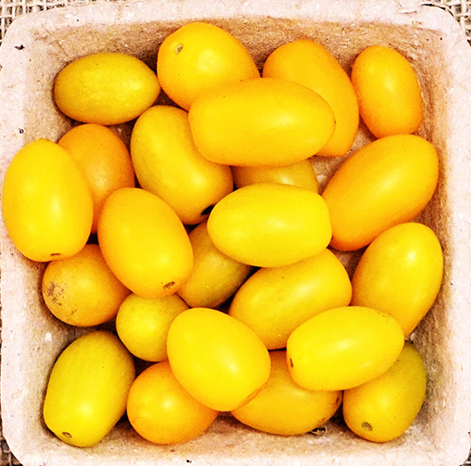 Versão amarelo do tradicional tomate sweet grape, muito doce. O seu tamanho similar à uva italia o torna perfeito para coquetel ou composição na salada. Oferecido em engradados de180g ou 500g.